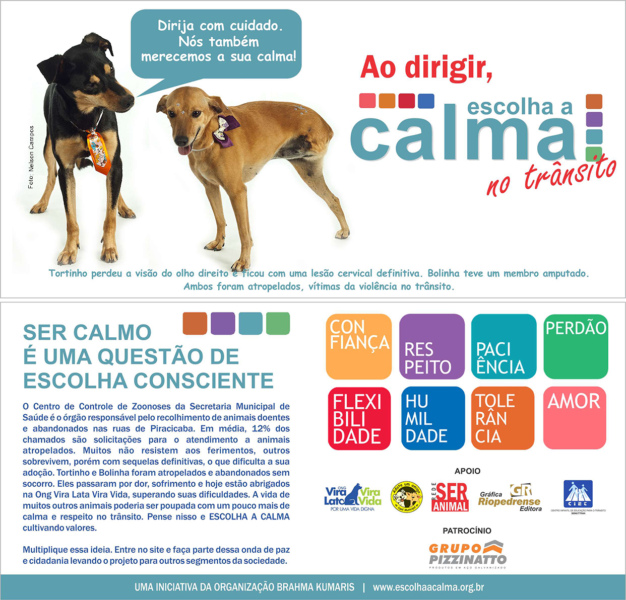 O Grupo Pizzinatto participou como patrocinador da campanha Escolha a Calma no Trânsito, realizada no chamado Dia de Saúde Animal, pelo Centro de Controle de Zoonoses. Sob coordenação da consultora Nádia de Castro, Escolha a Calma no Trânsito foi desenvolvida com os parceiros Rede Ser Animal, Núcleo de Educação Ambiental da Sedema, ONGs Vira Lata e Vira Vida, Grupo de Escoteiros, além da Guarda Civil e Policia Militar, com as apresentações dos cães adestrados.