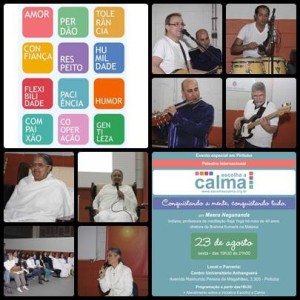 Atividade realizada no dia 23 de agosto em São Paulo – Pirituba – S.Meera Nagananda proferiu a palestra Conquistando A Mente, Conquistando Tudo, para um atento público de 50 pessoas, no Centro Universitário Anhanguera. Sister Meera, uma verdadeira “embaixadora espiritual” pratica Raja Yoga há mais de 40 anos, é uma das professoras principais da Brahma Kumaris internacional e coordena as atividades na Malásia. Esteve presente Luciana Ferraz, coordenadora nacional da Brahma Kumaris Brasil e Nádia de Castro, coordenadora da Campanha Escolha a Calma.